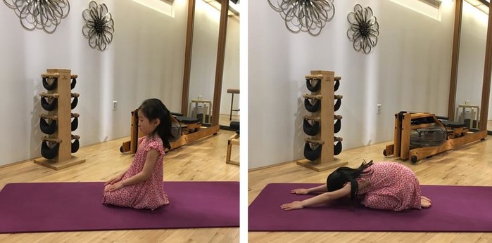 # 무릎 꿇고 앉아 상체 앞으로 숙이기