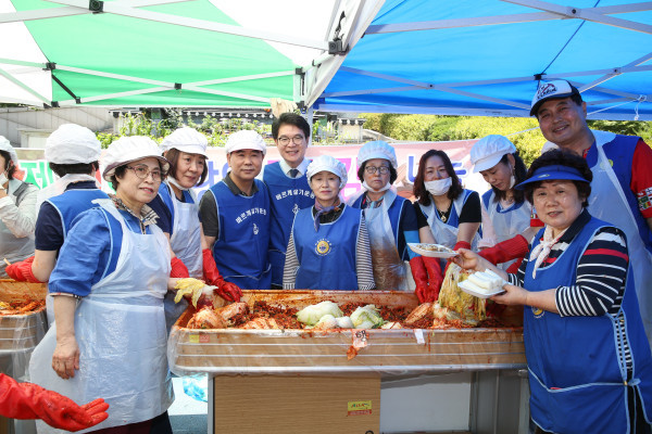 서울 성동구가 21일 구청 광장에서 바르게살기운동 성동구협의회 주관으로 ‘사랑의 김김치 나눔행사’를 개최했다. 사진은 행사에 참석한 정원오 구청장(왼쪽 네번째)과 협의회 관계자들이 기념촬영을 하는 모습. (사진제공=성동구청)