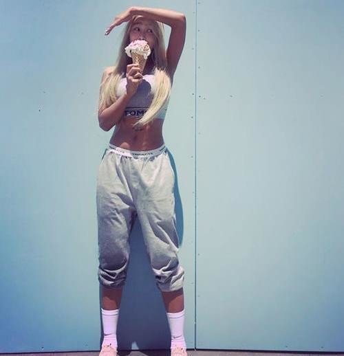 효린은 최근 자신의 SNS에 "더운 날에 아이스크림"이라는 내용의 글과 함께 여러 장의 사진을 게재했다. 공개된 사진 속 효린은 트레이닝 복 바지와 크롭탑을 입고 포즈를 취하고 있다.