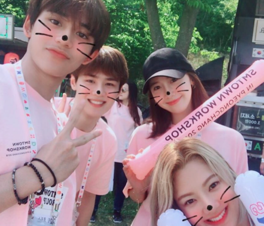 윤아는 최근 개인 SNS에 SM엔터테인먼트 평창 워크샵에서 촬영한 사진을 공개했다. 사진에서 윤아는 소녀시대 멤버 효연, NCT 멤버 루카스와 쿤이 해맑은 미소를 짓고 있다.