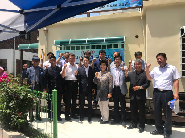 경기 용인시 처인구 동부동은 지난 22일 마평9통 마을회관에서 지역 주요인사와 기관단체장, 지역주민 등이 참석한 가운데 현판식을 개최했다. 사진은 마을회관 개관식에 참석한 관계자들이 현판식 후 기념촬영을 하는 모습. (사진제공=용인시청)