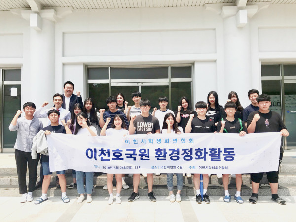 최근 경기 이천시학생회연합회가 ‘호국보훈의 달’을 맞아 국가유공자 및 참전용사의 국가를 위한 희생을 기억하고 감사하는 마음을 되새기기 위해 국립이천호국원을 찾아 환경정화활동을 실시했다. 사진은 참가 학생들이 활동 시작 전 기념촬영을 하고 있는 모습. (사진제공=이천시학생회연합회)