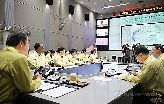 이낙연 국무총리가 휴일인 1일 오후 서울 세종로 정부서울청사의 중앙재난안전상황실을 방문해 제7호 태풍 쁘라삐룬의 북상에 따라 대처상황을 점검하고 있다.