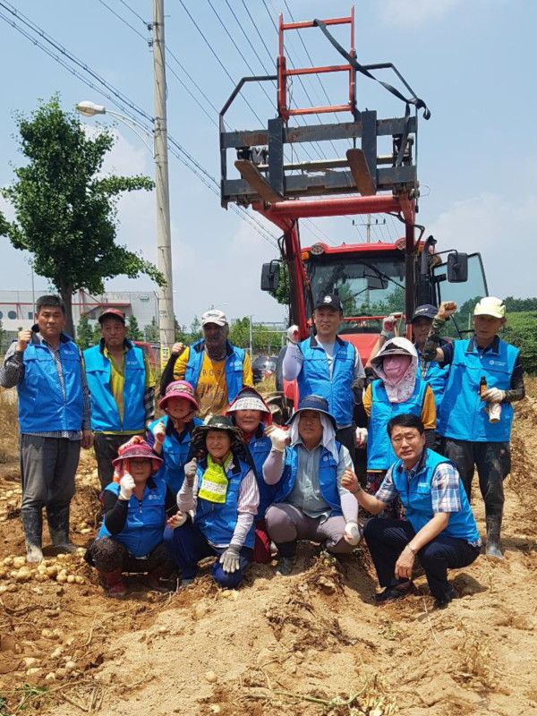 경기 안성시 서운면 바르게살기위원회는 '영농철 일손이 부족한 농가를 돕는다'는 취지에서 최근 양촌리 감자농가를 방문해 일손돕기를 진행했다. 사진은 일손돕기에 참여한 위원회 관계자들이 기념촬영을 하는 모습. (사진제공=안성시청)