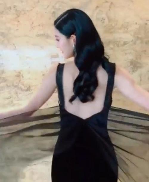 카메라를 향해 손을 흔드는가 하면 뒤태를 공개해 남다른 보디라인을 과시했다. 짙은 화장으로 색다른 매력을 풍기며 섹시미를 발산했다.