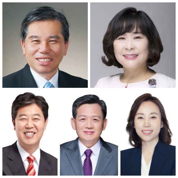 | ▲ 조영훈 의장(왼쪽 상단부터 시계방향으로), 이화묵 부의장, 이혜영 위원장, 윤판오 위원장, 고문식 위원장. | ||