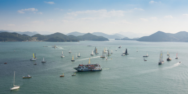 | ▲ 통영 한산해역에서 ‘제11회 이순신장군배 국제요트대회’가 진행 중인 모습. (사진제공=통영시청) | ||