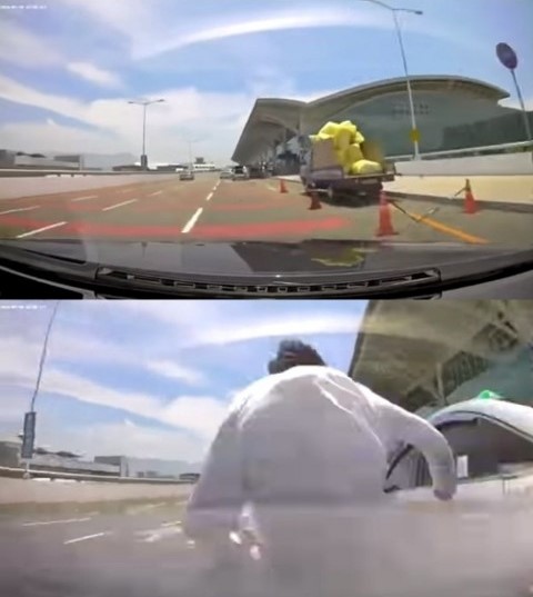 이 사고는 부산의 김해공항 진입로에 진입하던 차량이 속도를 줄이지 않고 진입하던 중 정차해있던 택시와 택시기사를 친 것이다. 택시기사는 인근 병원으로 이송됐지만 위중한 상황으로 알려졌다.