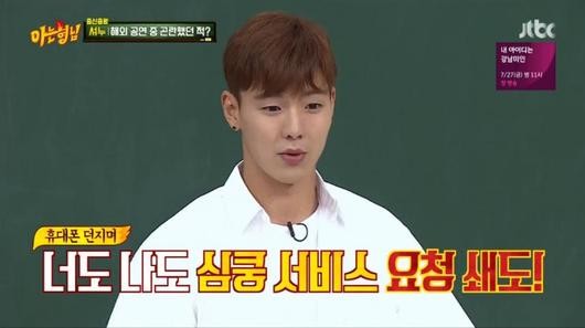 해외공연 중 자신의 핸드폰으로 셀프카메라를 찍어달라는 팬의 부탁을 들어줬더니, 다른 팬들도 그렇게 해달라며 핸드폰을 무대 위로 던져 곤란했다는 것.