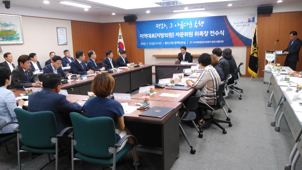 백군기 경기 용인시장은 지난 13일 시청 정책토론실에서 ‘제18기 민주평화통일자문회의 신규 자문위원’으로 위촉된 30명의 시·도의원에게 위촉장을 전수했다. 사진은 위촉장 전수 후 협의회 회의를 주재하고 있는 백 시장의 모습. (사진제공=용인시청)