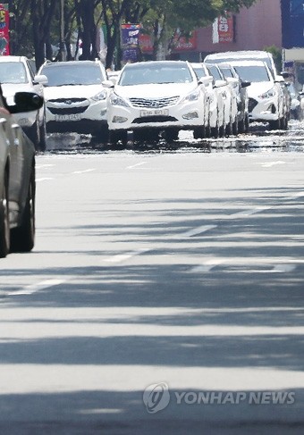 찜통더위가 이어진 16일 오후 대구시 북구 한 도로에 지열로 아지랑이가 피어오르고 있다.