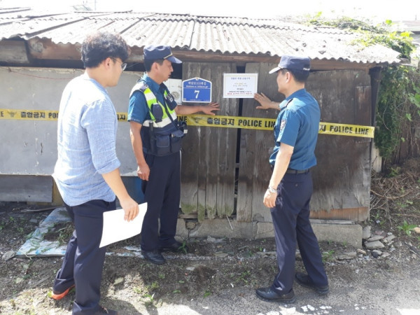 경기 연천경찰서는 16일 청산파출소를 비롯해 7개 지역관서 관계자 및 지역주민, 자율방범대원 등이 참석한 가운데 지역내 공·폐가에 대한 일제수색과 합동순찰을 펼쳤다. 사진은 공·폐가를 순찰하고 있는 경찰 관계자들의 모습. (사진제공=연천경찰서)
