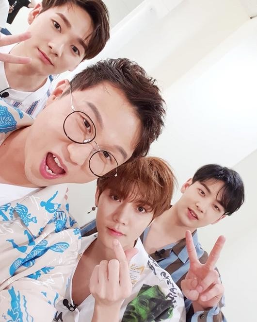 18일 박성광은 자신의 SNS에 뉴이스트W의 멤버 아론, 렌, 백호와 함께 찍은 두 장의 사진을 게재했다.