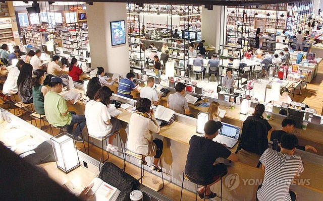 찜통더위가 계속된 19일 부산 해운대구 신세계 센텀시티몰에 있는 대형 서점에서 시민들이 독서를 하면서 무더위를 식히고 있다.