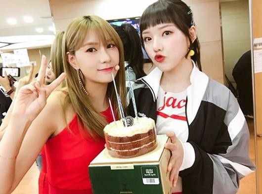 공개된 사진 속에는 한 음악방송 대기실에서 만난 하영과 예린이 케이크를 들고 사진을 찍고 있는 모습이 담겨 있다.
