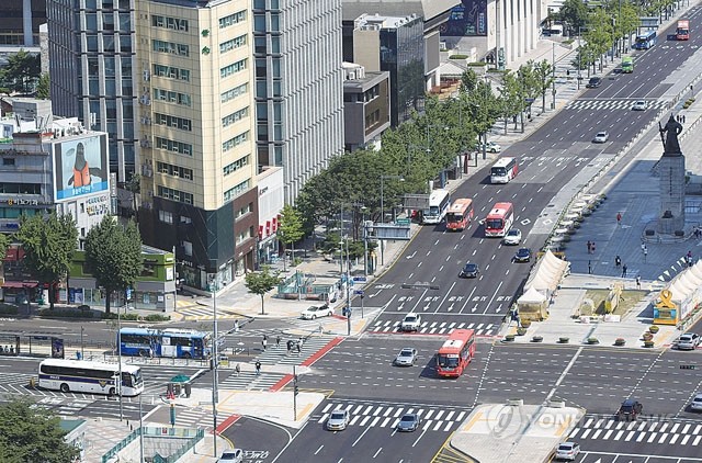 연일 폭염이 이어진 22일 오전 서울 광화문 일대 도심이 한산하다. 기상청은 이날 서울 최고기온이 37도까지 오르는 등 찜통더위가 당분간 계속될 것이라고 예보했다.