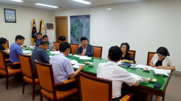 지난 20일 엄태준 경기 이천시장 주재로 ‘이천시 폭염대응 긴급 대책회의’가 열린 가운데 폭염대응태스크포스(TF) 관계자들이 장기간 지속될 것으로 전망되는 폭염으로 인한 피해 최소화를 위한 대응책을 논의하고 있다. (사진제공=이천시청)