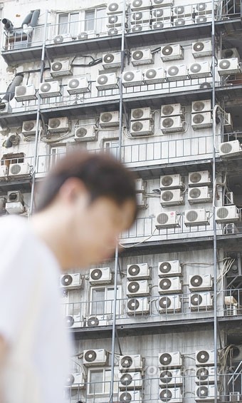 무더위에 여름철 최대전력수요가 연일 최고치를 경신하고 있는 23일 오전 서울 중구의 한 건물에 에어컨 실외기가 걸려있다.