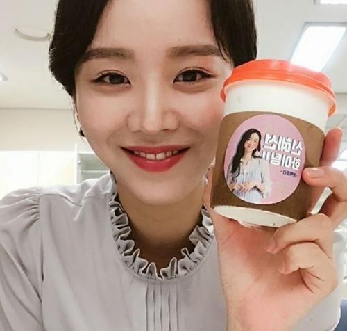 신혜선이 자신의 SNS를 통해 지인에게 선물받은 커피차 인증에 나섰다. 그는 자신의 얼굴이 들어간 컵홀더를 들고 있는 모습을 공개했다.