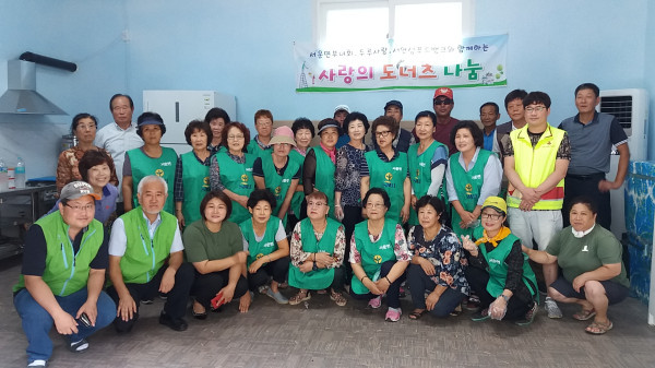 최근 경기 서안성푸드뱅크와 두루사랑 봉사단은 서운면사무소 새마을부녀회 다목적실에서 푸드뱅크 관계자 및 봉사단원, 새마을지도자 등이 참석한 가운데 '사랑의 도넛 나눔행사'를 개최했다. 사진은 행사 종료 후 기념촬영을 하는 관계자들의 모습. (사진제공=안성시청)