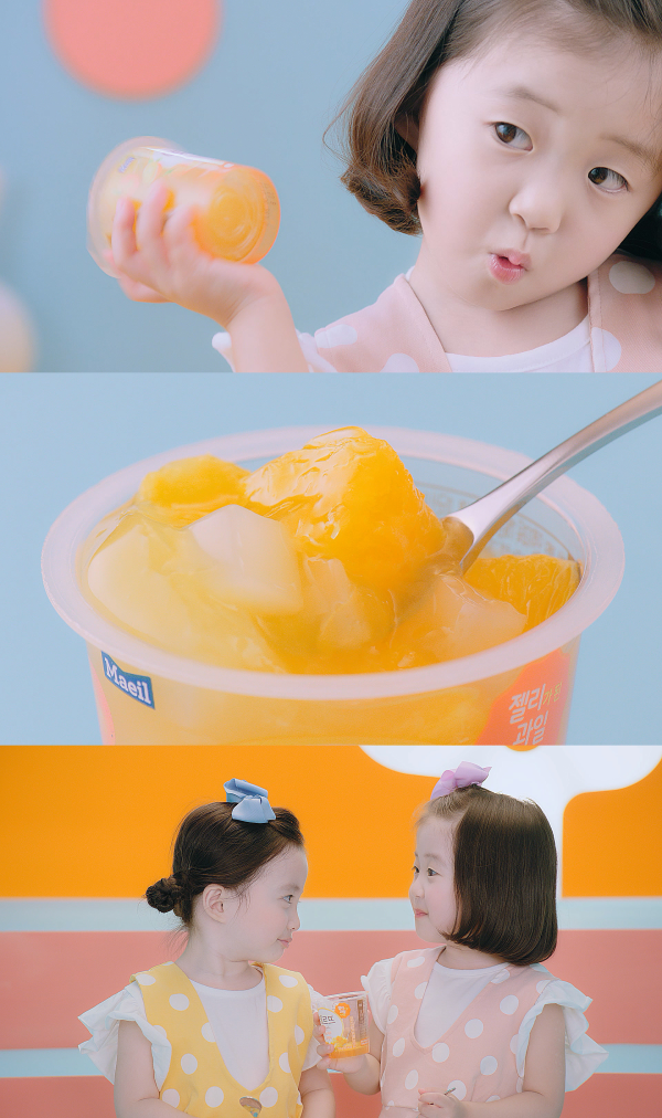“호로록”, “이게 뭐지? 찰랑거려” 영상 속 화면에 풍부한 과육과 과즙이 담긴 젤리가 움직이는 모습과 아이가 귓속말을 하듯 속삭이는 목소리가 들린다.