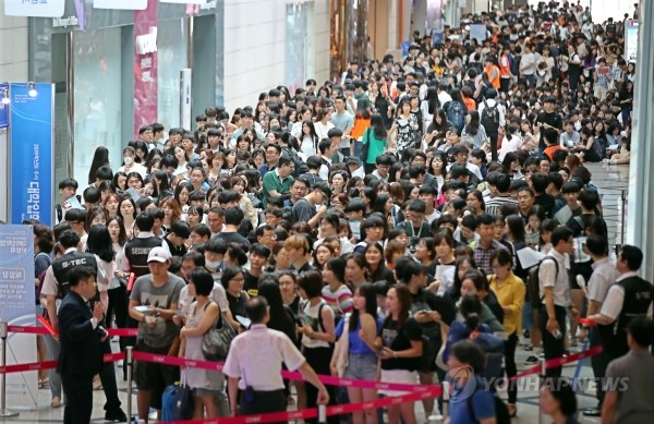 26일 오전 서울 강남구 코엑스에서 열린 2019학년도 수시 대학입학정보 박람회에서 학생들이 입장을 위해 줄 서고 있다.