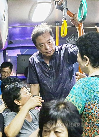 자유한국당 김병준 비상대책위원장이 1일 오전 서울 시내 시장을 방문하고 버스, 택시 등을 타며 민생현장을 찾아 시민들과 얘기를 나눴다. 사진은 김 비대위원장이 이날 버스를 타고 이동하며 시민과 얘기하는 모습.