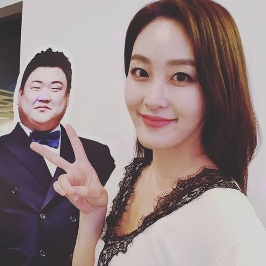 신아영은 자신의 SNS에 글과 함께 사진 한 장을 게재했다. 공개된 사진 속 신아영은 김준현 가판대와 함께 카메라를 응시하고 있다.