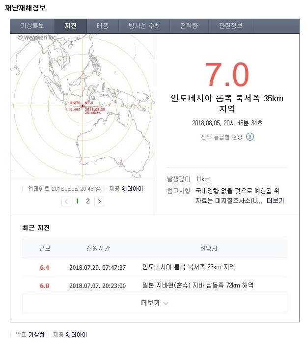 | ▲ (사진=네이버 지진정보 화면 캡쳐) | ||