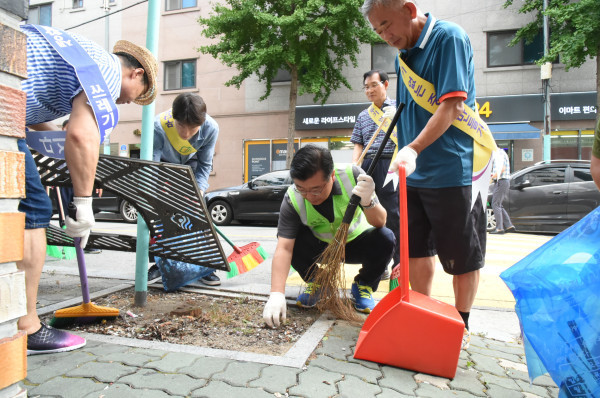 류경기 중랑구청장 마을 누비며 청소