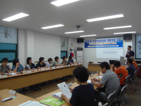 인천 연수구 동춘1동 주민자치위원회는 최근 주민센터에서 주민자치위원을 대상으로 역량강화 교육을 실시했다. 사진은 주민자치학회 소속 이동일 강사가 주민자치센터의 현안과 마을사업 모범사례에 대해 교육을 진행하는 모습. (사진제공=연수구청)