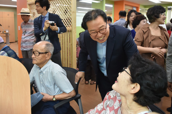 경기 남양주풍양보건소 치매안심센터는 지난 13일 진접·오남행정복지센터 복지동 2층에서 개소식을 개최하고, 본격적인 운영에 돌입했다. 사진은 조광한 시장이 치매안심센터를 방문해 교육 받고 있는 노인들을 격려하고 있는 모습.(사진제공=남양주시청)