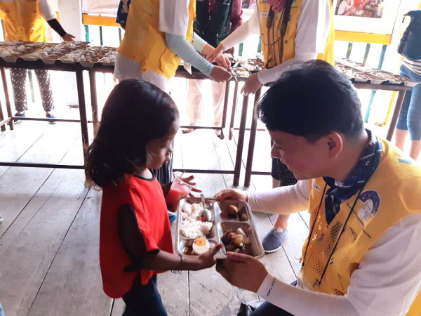 경기 양평군 ‘세상 밖으로 꿈 배낭 봉사단’은 지난 2~13일 11박12일간 캄보디아 시엡립 소재 끄로바이리엘 초등학교 학생들을 대상으로 ‘캄보디아 해외봉사’ 일정을 진행하고 귀국했다. 사진은 급식을 나눠주고 있는 봉사단원의 모습.(사진제공=양평군청)