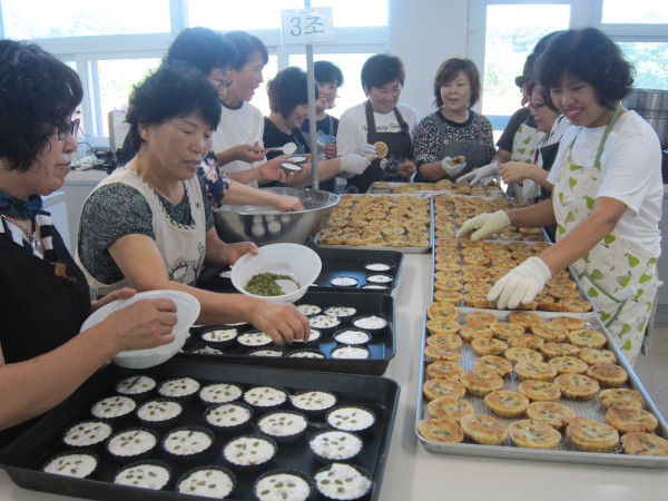 경기 남양주시 생활계선회는 16일 ‘쌀의 날’을 맞이해 시민들에게 우리 쌀의 우수성을 알린다는 취지로 도농역에서 ‘우리 쌀로 만든 찹쌀방 나눔행사’를 진행했다. 사진은 찹쌀빵을 만든 후 기념촬영을 하는 개선회 회원들의 모습. (사진제공=남양주시청)