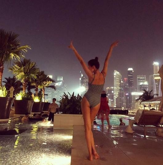 한혜진은 최근 자신의 SNS에 글과 함께 수영복 인증샷을 게재했다. 공개된 사진 속 한혜진은 수영복을 입고 'S라인 뒤태'를 뽐내며 자연스러운 섹시미를 발산했다.