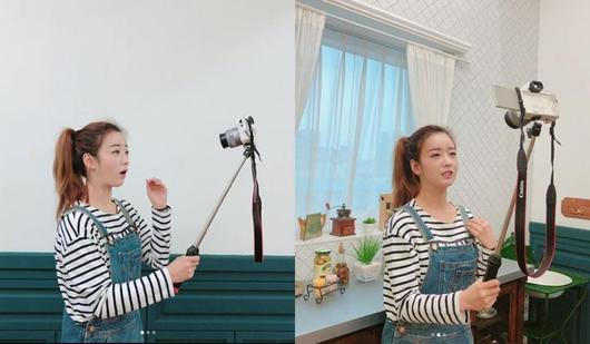 에이핑크 윤보미는 공식 SNS에 사진을 게재했다. 사진 속 윤보미는 셀카봉을 들고 촬영을 하는 포즈를 취하고 있다.