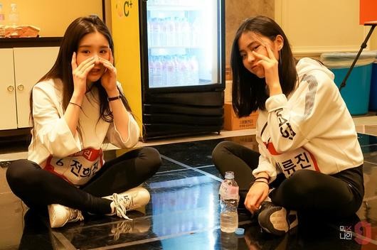 공개된 사진 속에는 쑥쓰러운 듯 손으로 얼굴을 가린 채 카메라를 바라보고 있는 신류진과 전희진의 모습이 담겼다. 무대 준비를 위해 시간을 보내고 있는 두 사람의 모습에 누리꾼들의 관심이 쏠렸다.