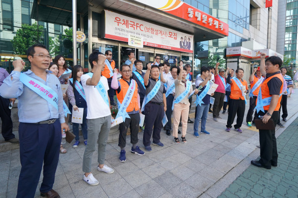 서울 동대문구가 지난 17일 하정청렴거리 일대에서 불법 광고물 근절을 위한 ‘민관 합동 캠페인’을 개최했다. 사진은 신설동역 교차로 인근에서 구 관계자 및 하정청렴거리 간판개선 주민위원 등이 캠페인을 진행하고 있는 모습. (사진제공=동대문구청)
