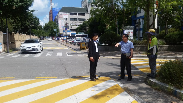 21일 구의회에 따르면 신 의원은 이날 상일동 동아아파트 앞 회전교차로 신설과, 상암로 419 앞 잦은 역주행으로 인한 교통표지 신설, 명일2동 주양쇼핑 앞 일방통행길 역주행에 따른 노면표지·교통표지 신설, 대명초교입구 교차로 대각선 횡단보도 신설 등 총 4곳의 민원현장을 방문해 민원 해결을 위한 방안에 대해 모색했다.