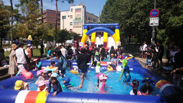 경기 수원시 권선구 호매실동은 지난 18일 칠보로 183 일대에서 올해 세 번째 ‘칠보183거리축제’를 개최했다. 이날 행사는 오전 11시~오후 4시, 약 200명의 주민의 참여 속에 성황리에 마쳤다. 사진은 축제에 참여한 주민들이 물놀이를 즐기고 있는 모습. (사진제공=권선구청)