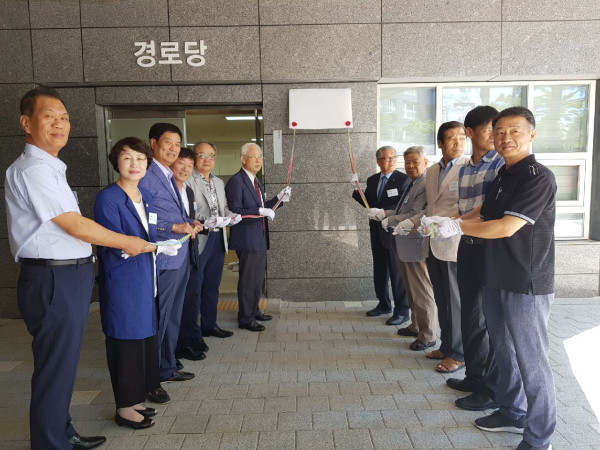 경기 용인시 기흥구 서농동은 지난 17일 대한노인회 기흥구지회 관계자와 시·도의원, 지역주민 등이 참석한 가운데 지역내 11번째 경로당인 ‘서천 효성경로당’의 개소식을 진행했다. 사진은 경로당 개소식 현판식에 참석한 관계자들이 기념촬영을 하는 모습. (사진제공=용인시청)