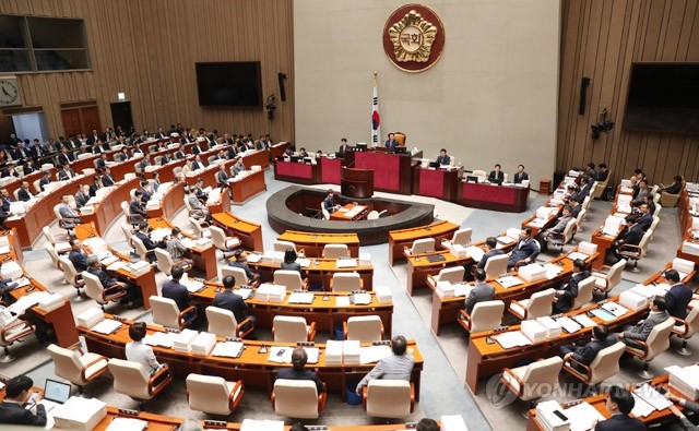 이낙연 국무총리 등 국무위원들이 21일 국회에서 열린 예산결산특별위원회 전체회의에 참석하고 있다.