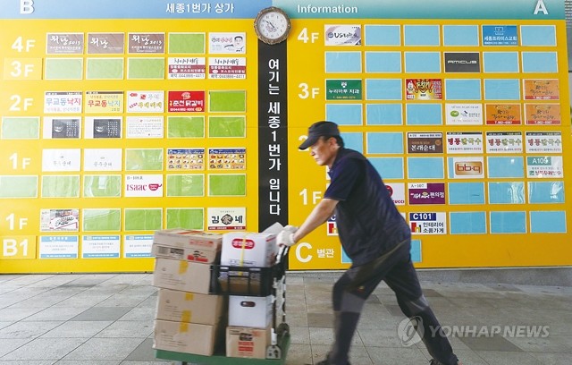 22일 세종시 정부세종청사 부근 상가 모습. 임차인이 들어오지 않아 상가 안내판이 텅 비어 있다.