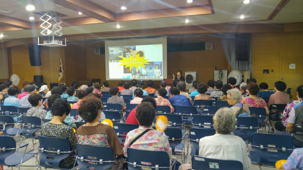 경기 부천시보건소는 최근 노인 일자리 및 사회활동 지원 사업 참여자를 대상으로 감염병 예방 및 관리 교육을 실시했다. 사진은 각종 감염병 예방을 위한 올바른 손 씻기, 기침예절, 성병 예방법 등에 대해 강의하는 모습. (사진제공=부천시청)
