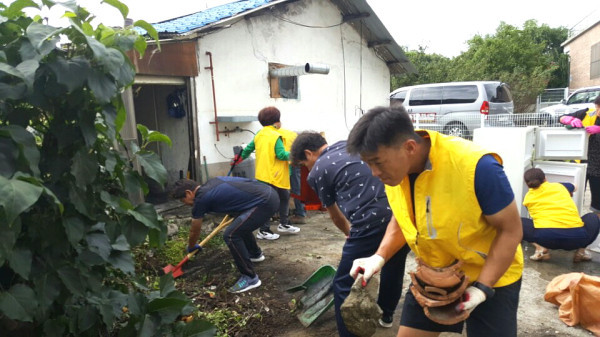 경기 연천군 전곡읍 지역사회 보장협의체는 연천사랑 가족봉사단과 연계해 지난 25일 전곡읍 전곡6리에 소재한 저소득 취약계층 가구를 방문해 쾌적한 주거환경 조성을 위한 주거환경개선사업을 실시했다. 사진은 주거환경이 진행 중인 모습. (사진제공=연천군청)
