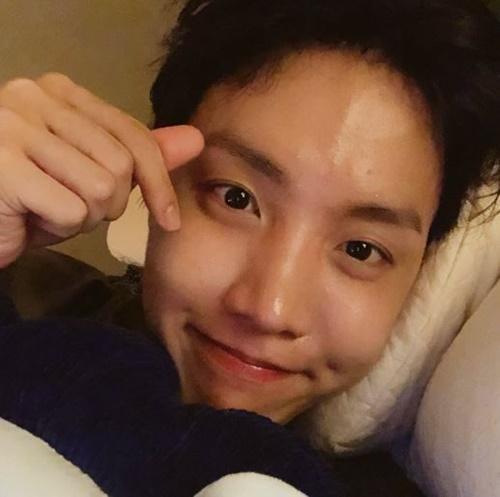 제이홉은 최근 방탄소년단 공식 트위터에 "공연에 집중하느라 현장에서 찍은 셀카가 다 없다"라는 글을 남겼다. 이어 공개한 사진 속 그는 침대에 누워 잠들기 전 손하트로 팬들에 애정을 전하는 모습이다.