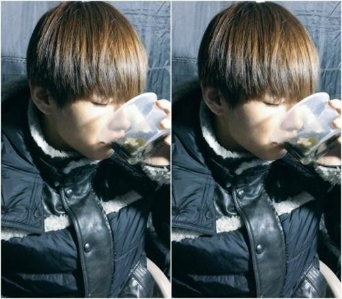 뷔는 과거 방탄소년단 공식 트위터에 "미역국 감사합니다. 원샷했어요"라는 글과 함께 사진을 올렸다. 공개된 사진 속에는 뷔가 그릇을 든 채 미역국을 마시고 있는 모습이 담겨 있다.