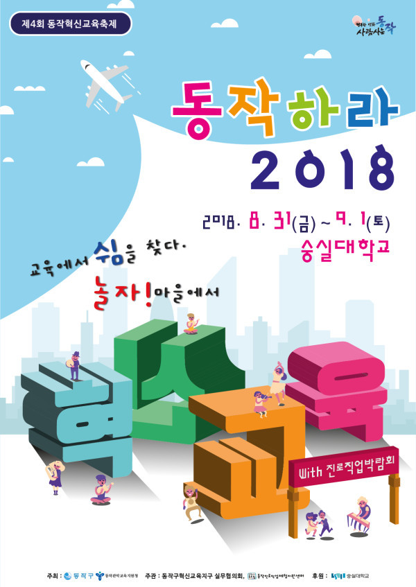 [시민일보=여영준 기자] 서울 동작구(구청장 이창우)가 오는 31일~9월1일 양일간 숭실대학교 한경직기념관 일대에서 제4회 동작혁신교육축제 '동작하라 2018'를 개최한다.