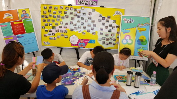 | ▲ 지난해 열린 축제에서 '아무거나 프로젝트' 부스를 방문한 어린이들이 프로그램에 집중하고 있다. | ||