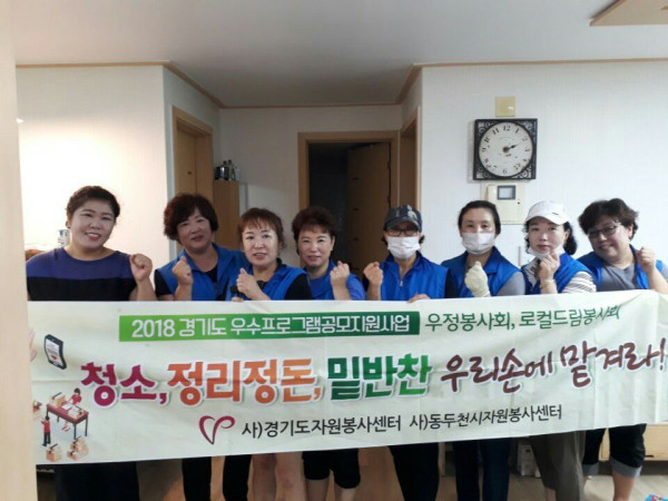 최근 경기 동두천시 송내동 행정복지센터는 동두천시 자원봉사센터와 연계해 우정봉사회 10여명과 함께 사례관리 대상자 중 주거환경 개선이 필요한 K씨 가구를 방문해 정리정돈 서비스를 실시했다. 사진은 참여자들이 기념촬영을 하는 모습. (사진제공=동두천시청)